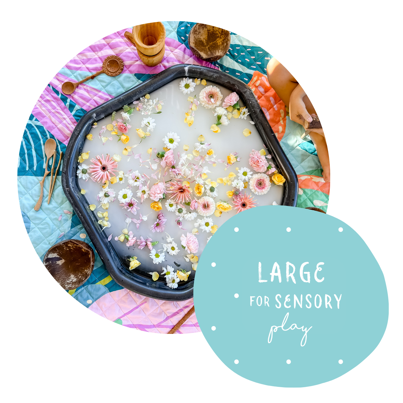 Whichever size suits your family’s needs, we guarantee our high-quality playmats, picnic rugs and beach blankets will help provide opportunities for children to thrive while doing what they do best – getting messy!