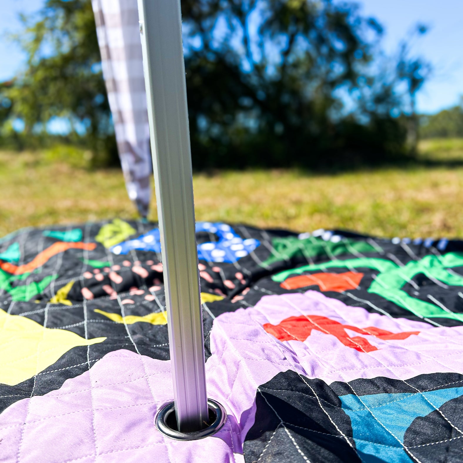 Discover the convenience and joy of our Waterproof Picnic Blankets. Designed to withstand kids' playfulness, spills, and messes while keeping your picnic area clean and dry. Enjoy quality time outdoors with our durable, easy-to-clean blankets featuring cheerful designs. Say goodbye to sandy surprises and hello to stress-free picnics! Plus, our beach umbrella version comes with a gap for your pole in the center, fitting perfectly with cool cabanas or beach umbrellas.