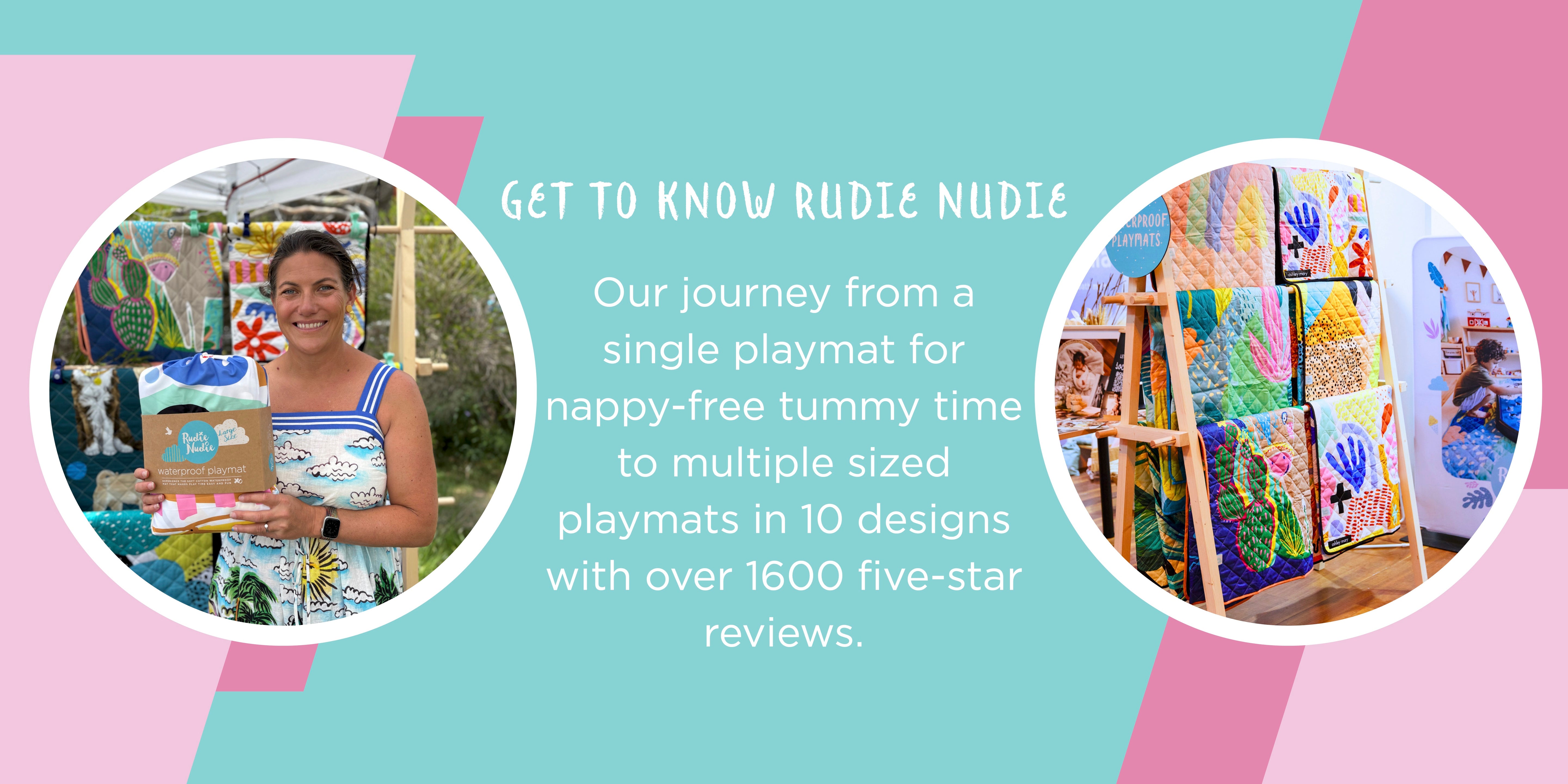 We all know how messy nappy-free playtime can be, so after trying all sorts of set ups, I realised there needed to be a simpler option: what if there was a machine washable, totally waterproof playmat? Genius! And from there, the unique Rudie Nudie Waterproof Playmat was born. From our first prototype, it made my life so much easier, and I hoped it would make a world of difference to other parents..